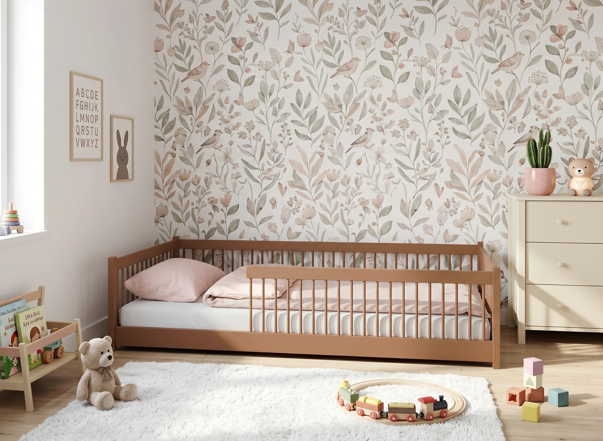 Ditt barn förtjänar självständighet – upptäck den kanelfärgade JUNIOR-sängen 120x200 i Montessori-stil