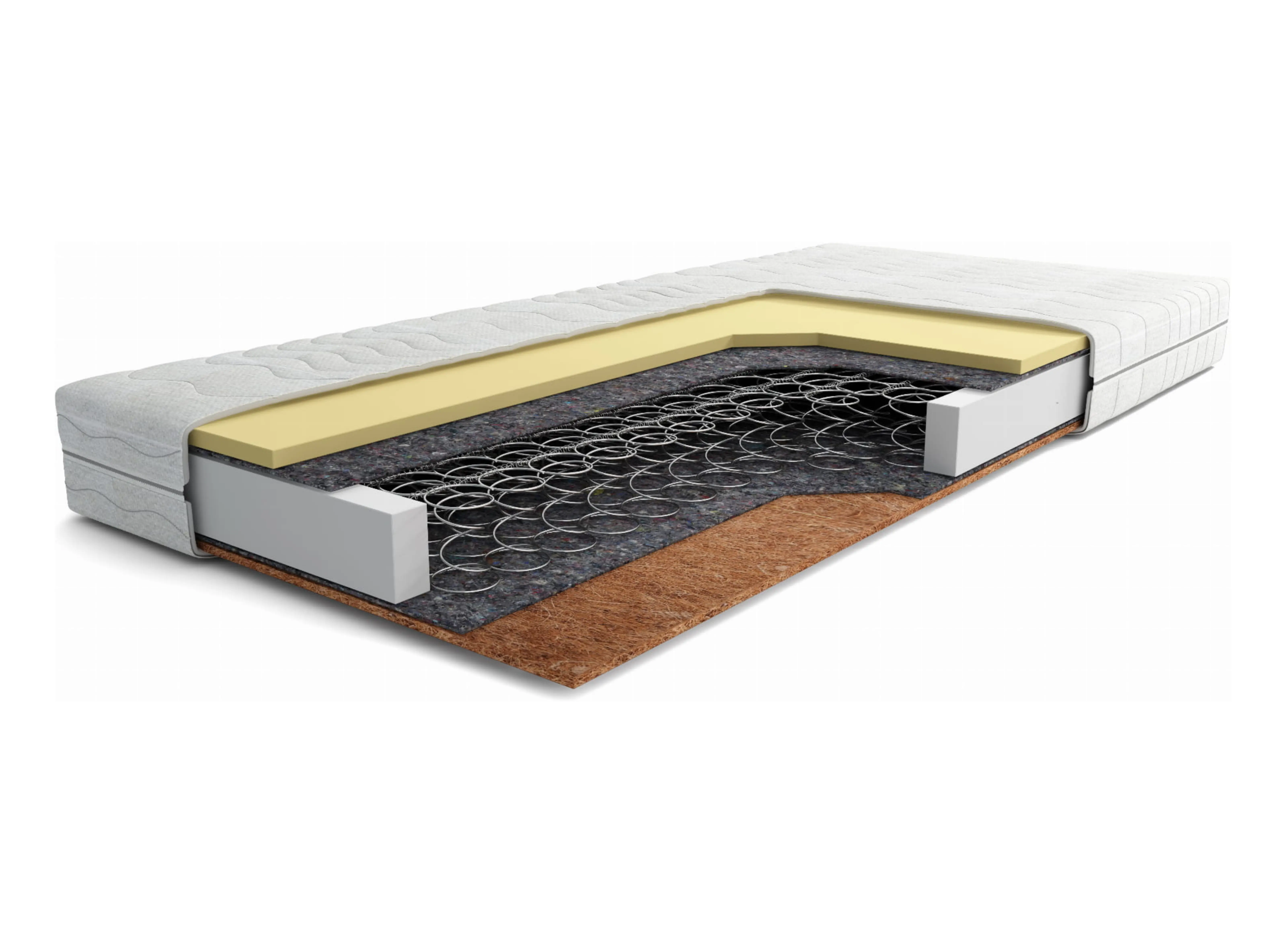 | Fyllning | Kokosmatta – 1 cm, Filt, Bonellfjädrar – 9 cm, Filt, VISCO-skum – 2 cm, Överdrag – 1 cm |