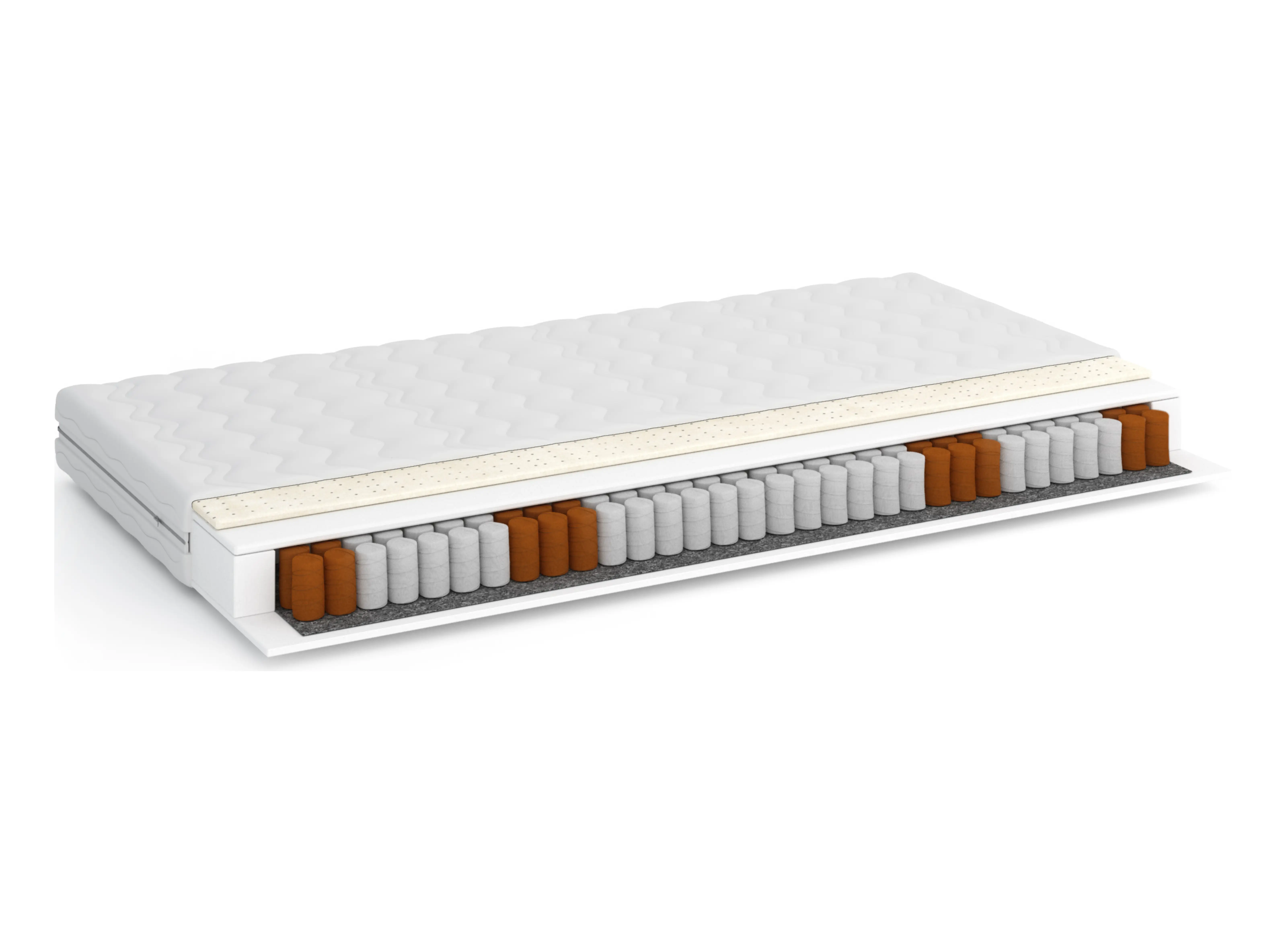 | Fyllning | Polyuretanskum T25 – 2 cm, Filt, Pocketfjädrar – 12 cm, Filt, Polyuretanskum T25 – 2 cm, Lateksskum – 2 cm, Överdrag – 1 cm |