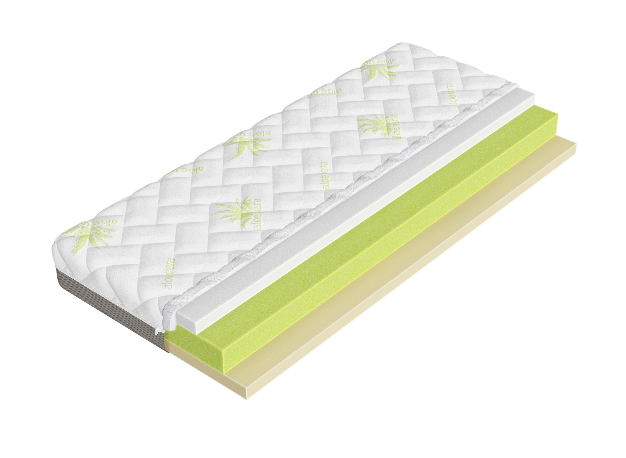 | Fyllning | Överdrag stickat tyg Aloe vera + 3D-nät 1 cm; polyuretanskum 3 cm; viskoskum 3 cm; högelastiskt skum 6 cm |