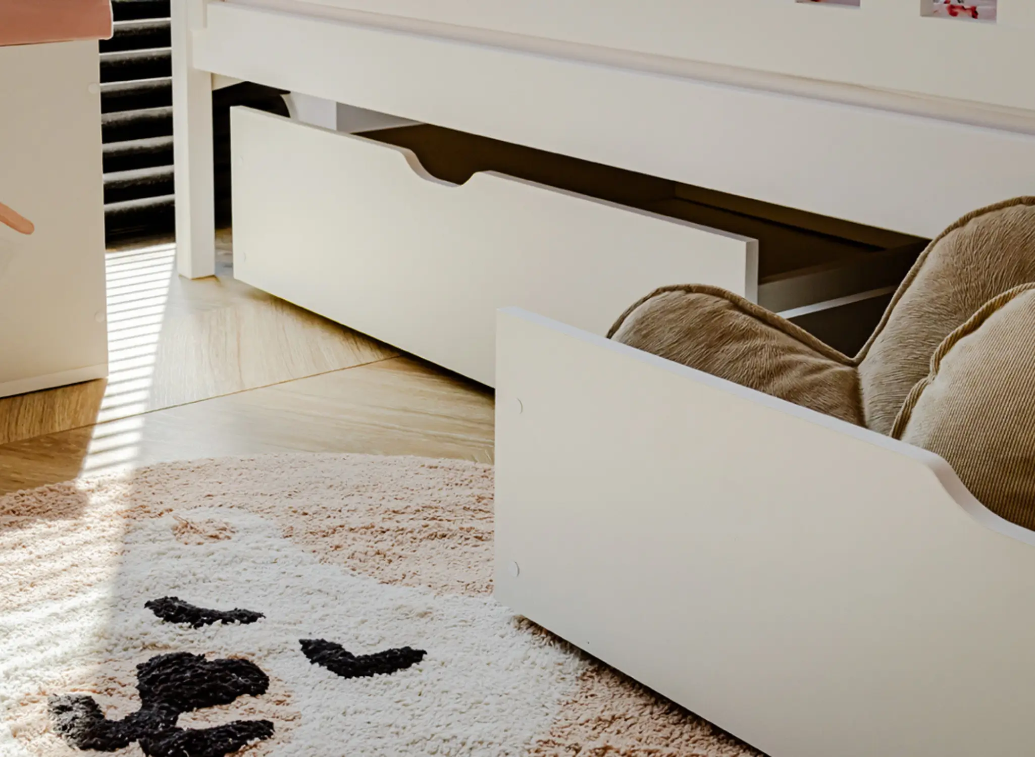 Även om inredningen i ett barnrum kan utformas på många sätt, får en sak inte saknas: en funktionell barnsäng. Se om GUCIO-modellen från Lano Meble är rätt val för ditt barn. Som förälder har du säkert din egen vision av hur en perfekt barnsäng ska se ut. GUCIO-modellen kan konfigureras fritt för att bäst möta dina förväntningar. Du kan ändra yttermåtten och även utseendet på sängens undersida, som kan (men inte måste) utrustas med rymliga lådor. Det är upp till dig hur GUCIO-sängen i ditt barns rum ska se ut.