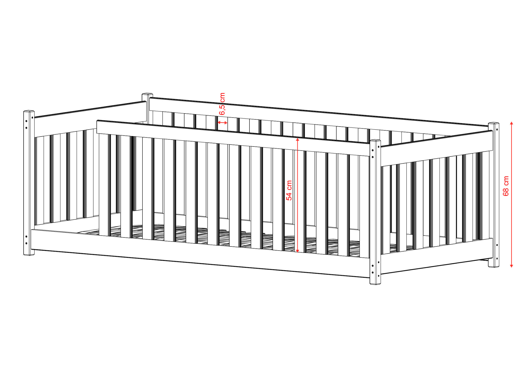 - värdesätter säkerhet Dess träskyddsräcken skyddar barnet under både sömn och lek.