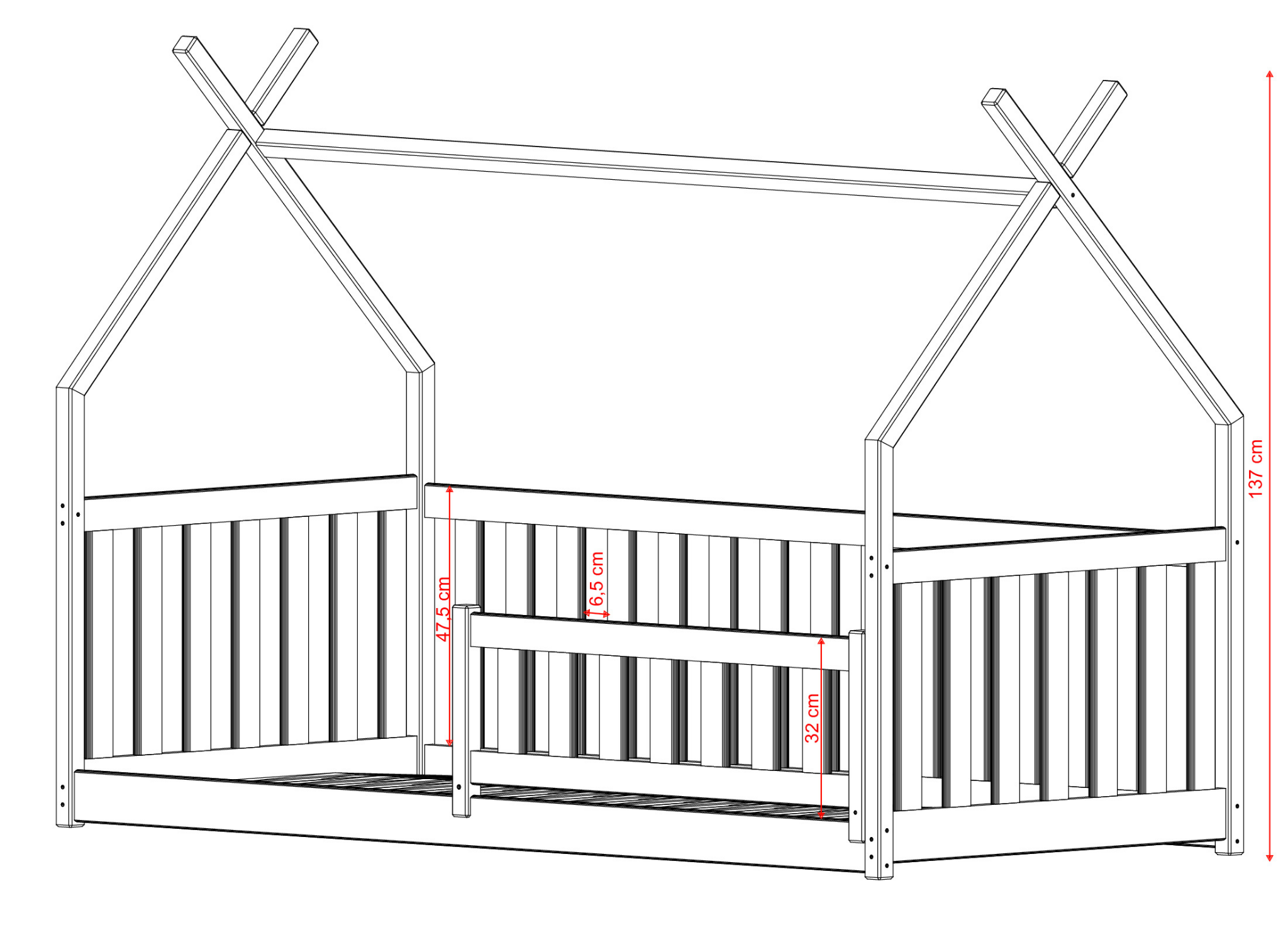 Vi vill att barnet ska upptäcka allt nytt med intresse och glädje i att utforska världen omkring sig. BOGUŚ tipi-golvsäng kommer definitivt att hjälpa till med det! Fascinera ditt barn med sagolika berättelser och förflytta er tillsammans till en värld av unika äventyr med BOGUŚ tipi-barnsäng från Lano Meble. Du kan vara säker på att väcka en sådan nyfikenhet på världen som hjälper barnet inte bara i förskolan utan även i senare stadier av uppväxten. Vi är övertygade om att BOGUŚ tipi-säng är en unik möbel för ditt barn. Utöver de uppenbara visuella fördelarna med vår barnsäng, är denna möbel tillverkad av högkvalitativt furuträ. Våra barnsängar uppfyller de strängaste standarderna, så att du som förälder kan vara säker på att du väljer det bästa för ditt barn. Våga förnya barnrummet och ge ditt barn en unik värld av äventyr med BOGUŚ tipi-säng från Lano Meble.