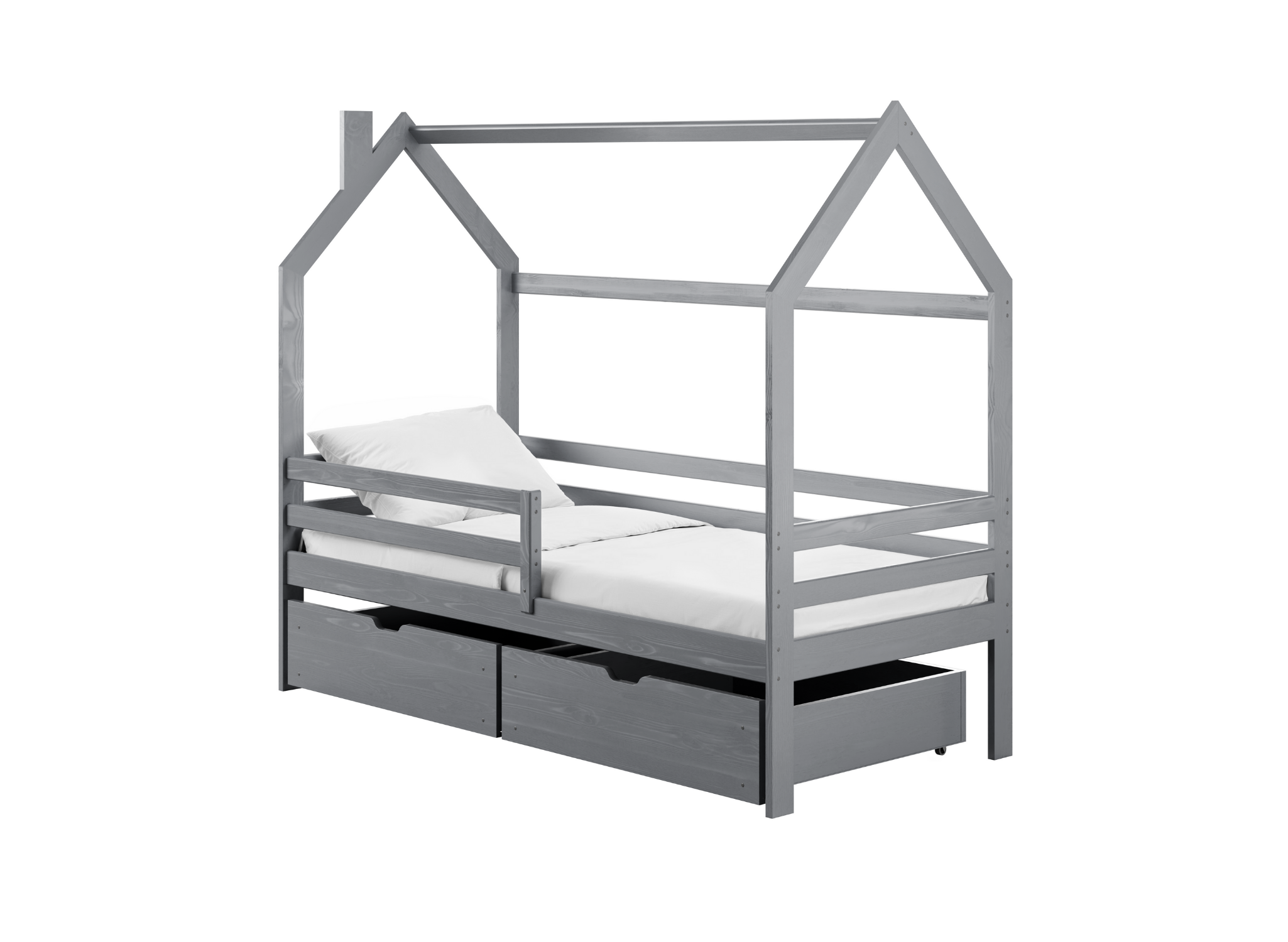 LILA 80x160 askgrå barnsäng husform Lano Möbler