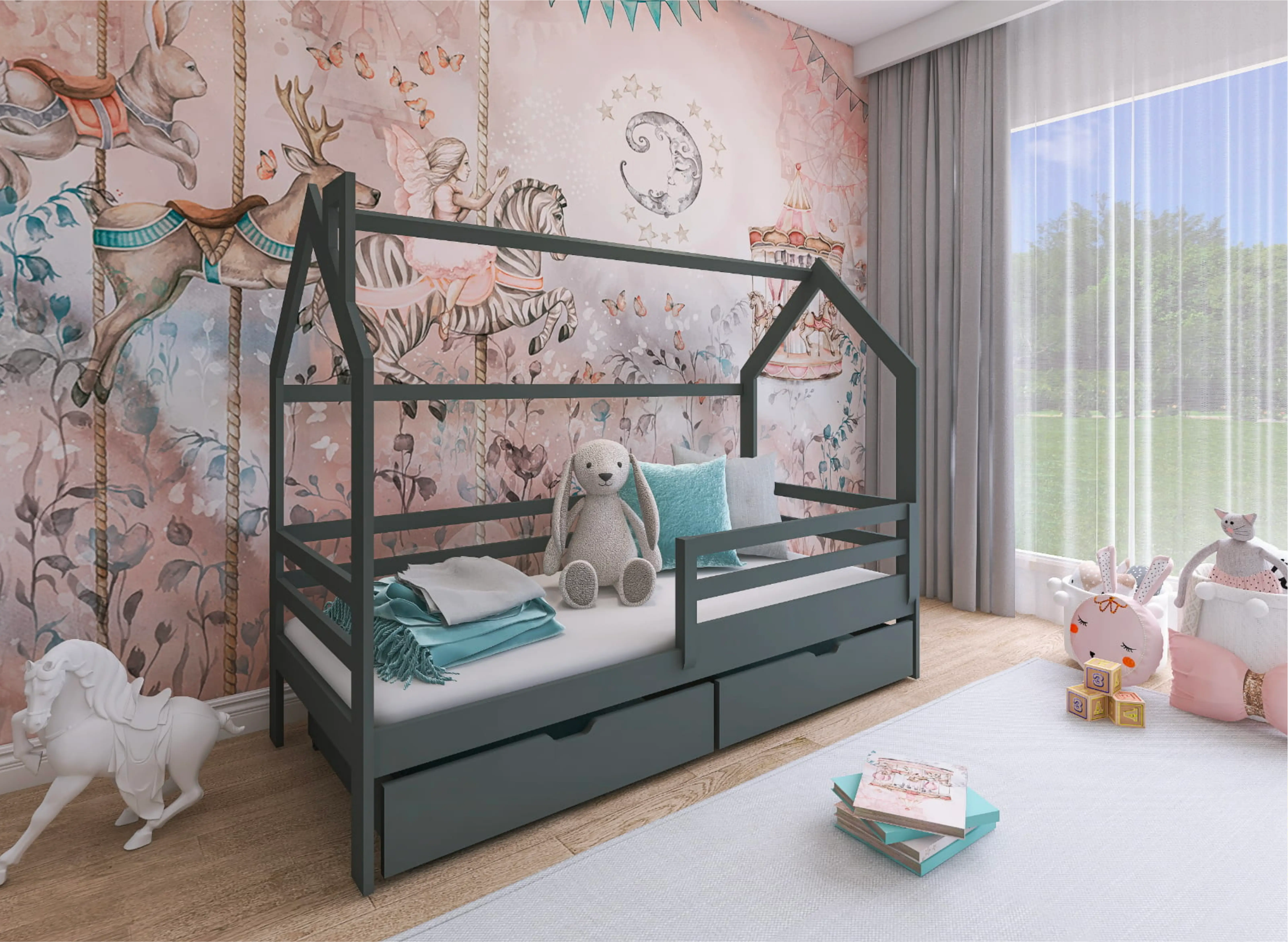 Grafitgrå hussäng LILA 80x160 – en fantasifull ö i ditt barns fantasi-ocean