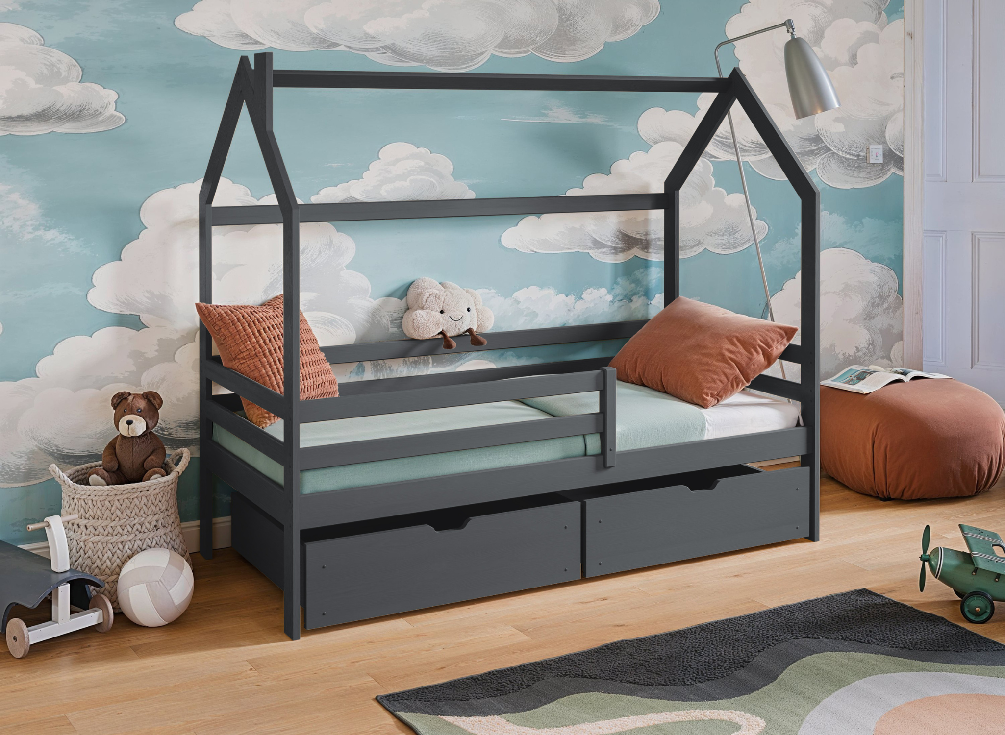 LILA 80x160 grafitgrå barnsäng husform Lano Möbler