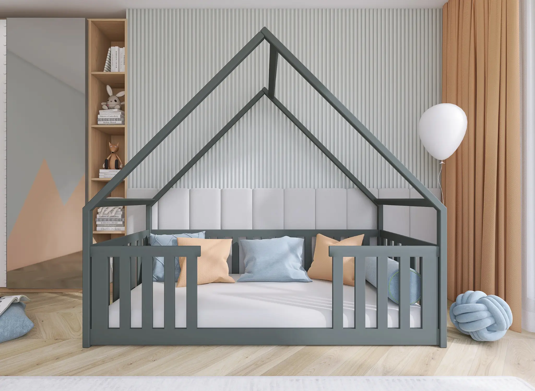 BEE 80x190 grafitgrå barnsäng husmodell Lano Möbler