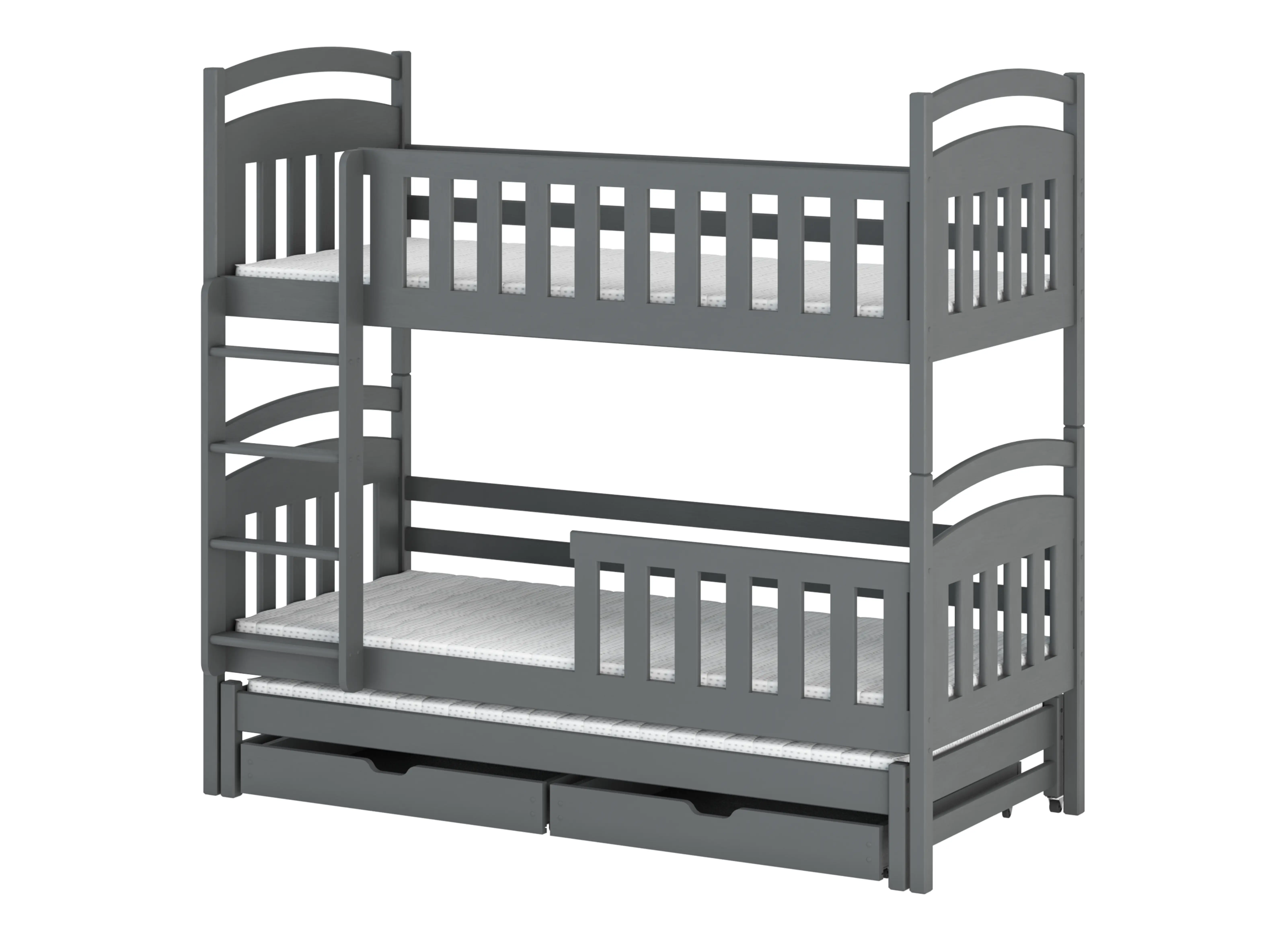 Träsäng med praktisk förvaring – grafitgrå våningssäng VIKI