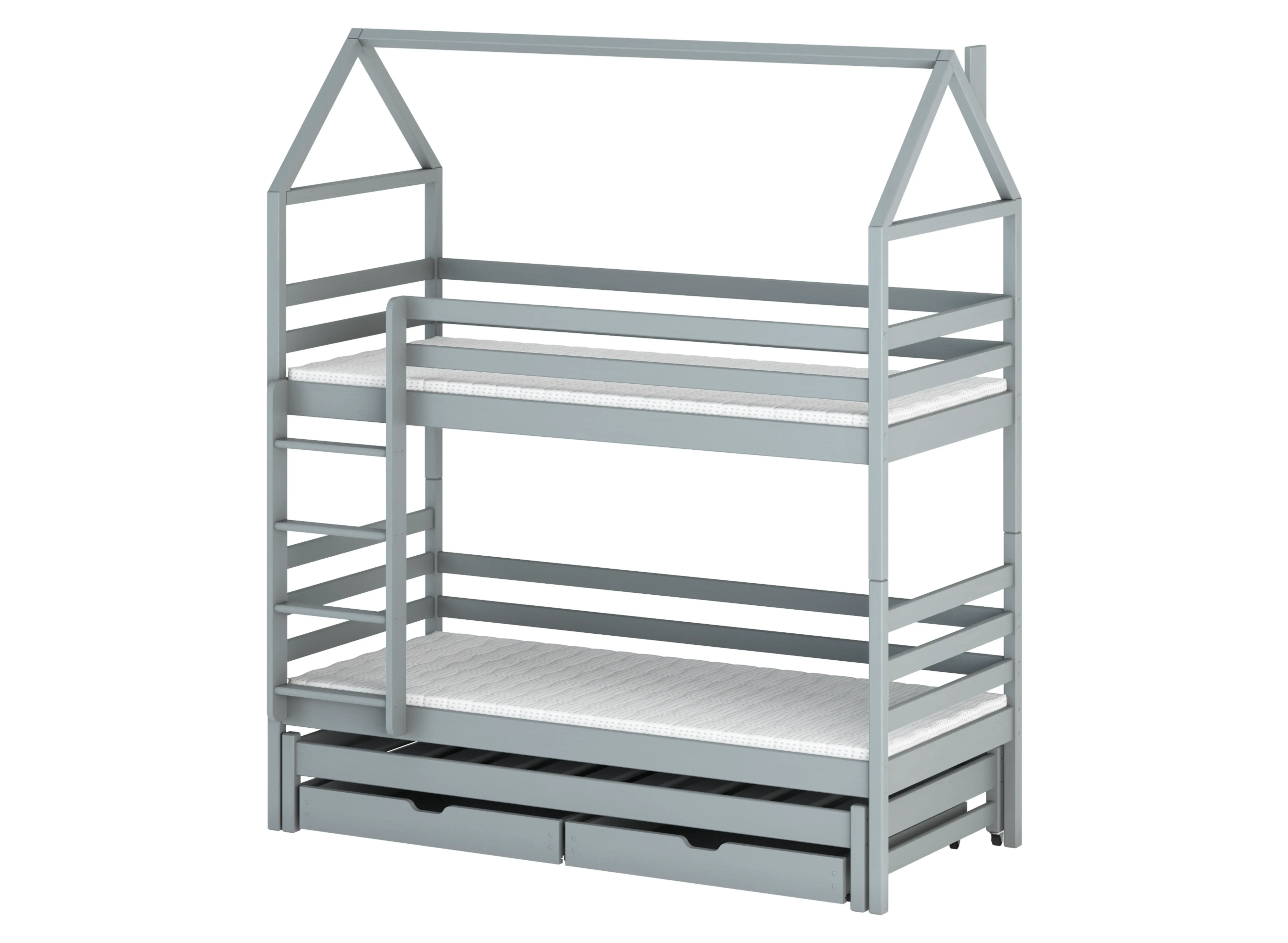 DALIA 80x170 våningssäng hus i askgrått – inspirerad av sagornas värld
