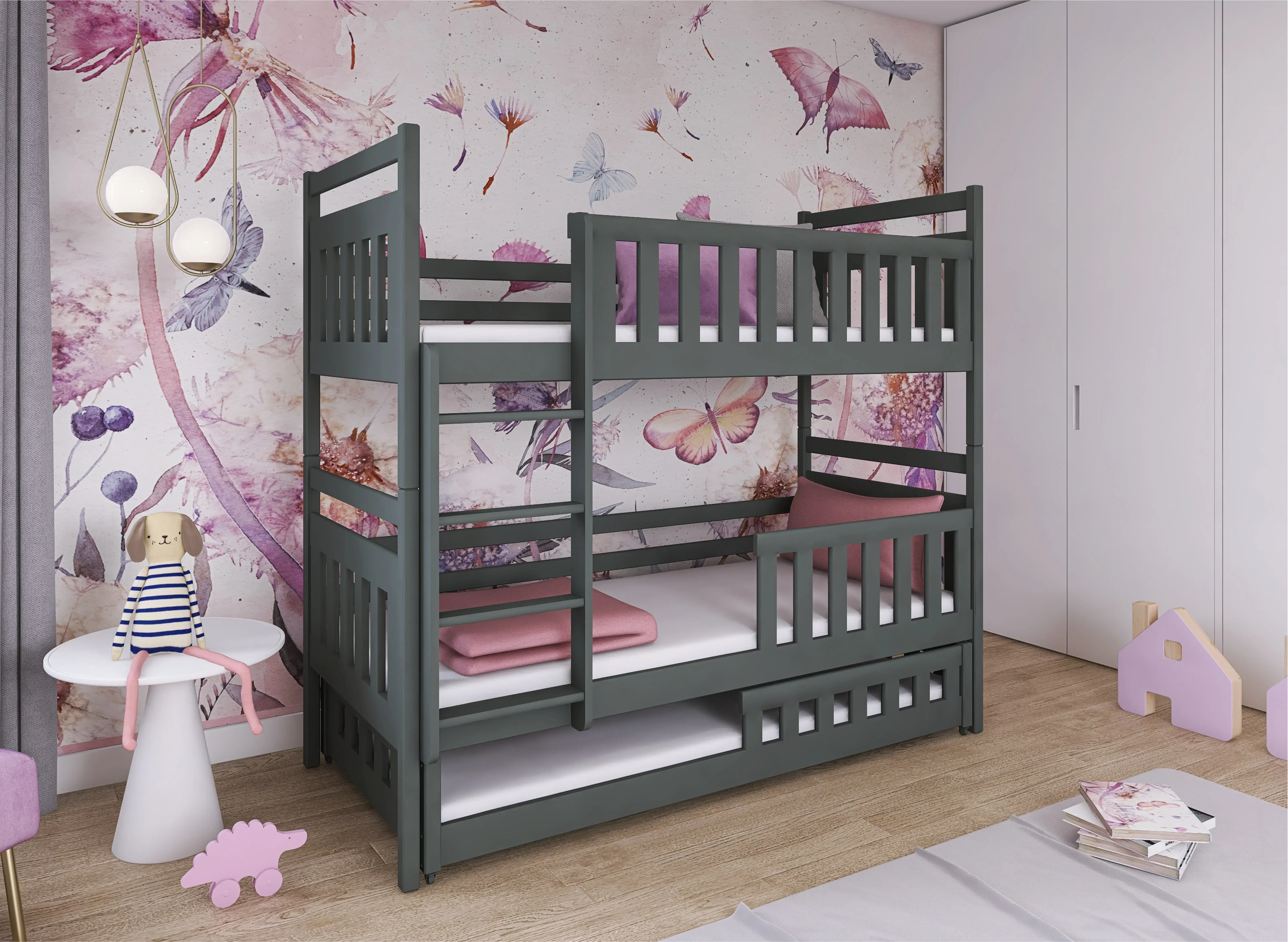 Lär känna OLIWIA grafitgrå våningssäng 80x180 – bekväm sömn för upp till tre syskon