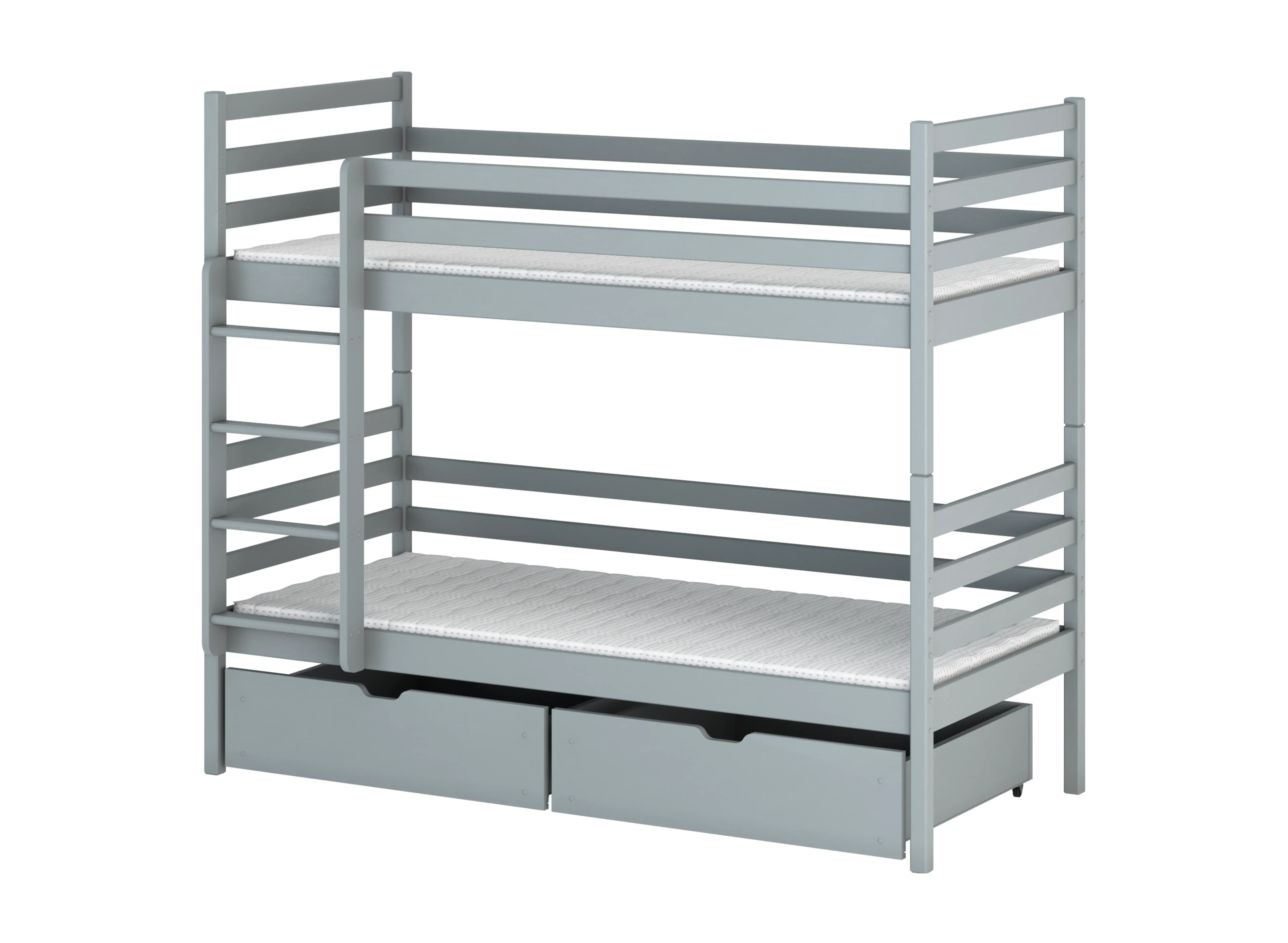 Låt oss vara ärliga. Drömmen för nästan varje barn är en våningssäng. Att klättra upp till övervåningen via en korrekt utformad trastege är en fantastisk känsla och en stor attraktion. Det är dock värt att välja beprövade och solida lösningar från Lano Meble, som våningssängen NEMO. Den presenterade barnsängen NEMO är mer än bara en plats för vila. Det är också praktisk organisering av utrymmet och en plats för många äventyr. Dessutom tar våningssängen NEMO andan ur en med sin unika design. Ingen kommer att gå förbi den likgiltigt. Möbeln ger två bekväma sovplatser, vilket gör att dina barn vaknar utvilade och fulla av energi. De två rymliga lådorna längst ner på sängen förtjänar extra uppmärksamhet. De är tillräckligt stora för att rymma leksaker, barntillbehör eller olika textilier.