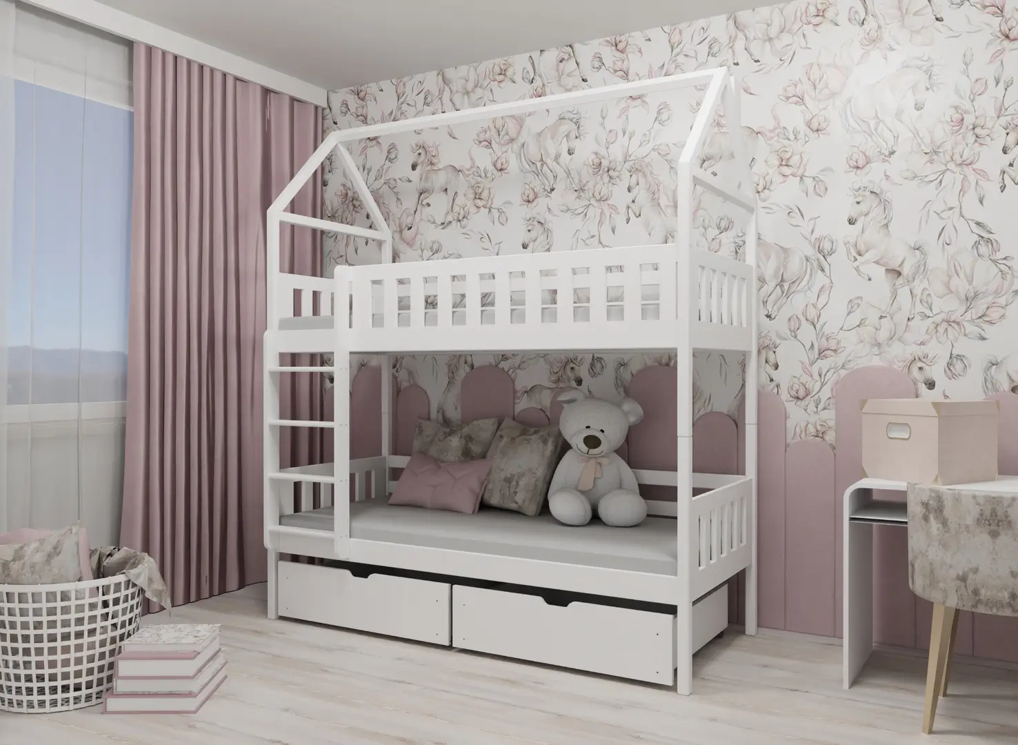 Vit hussäng våningssäng GAJA 80x160 – för både små och stora barnrum