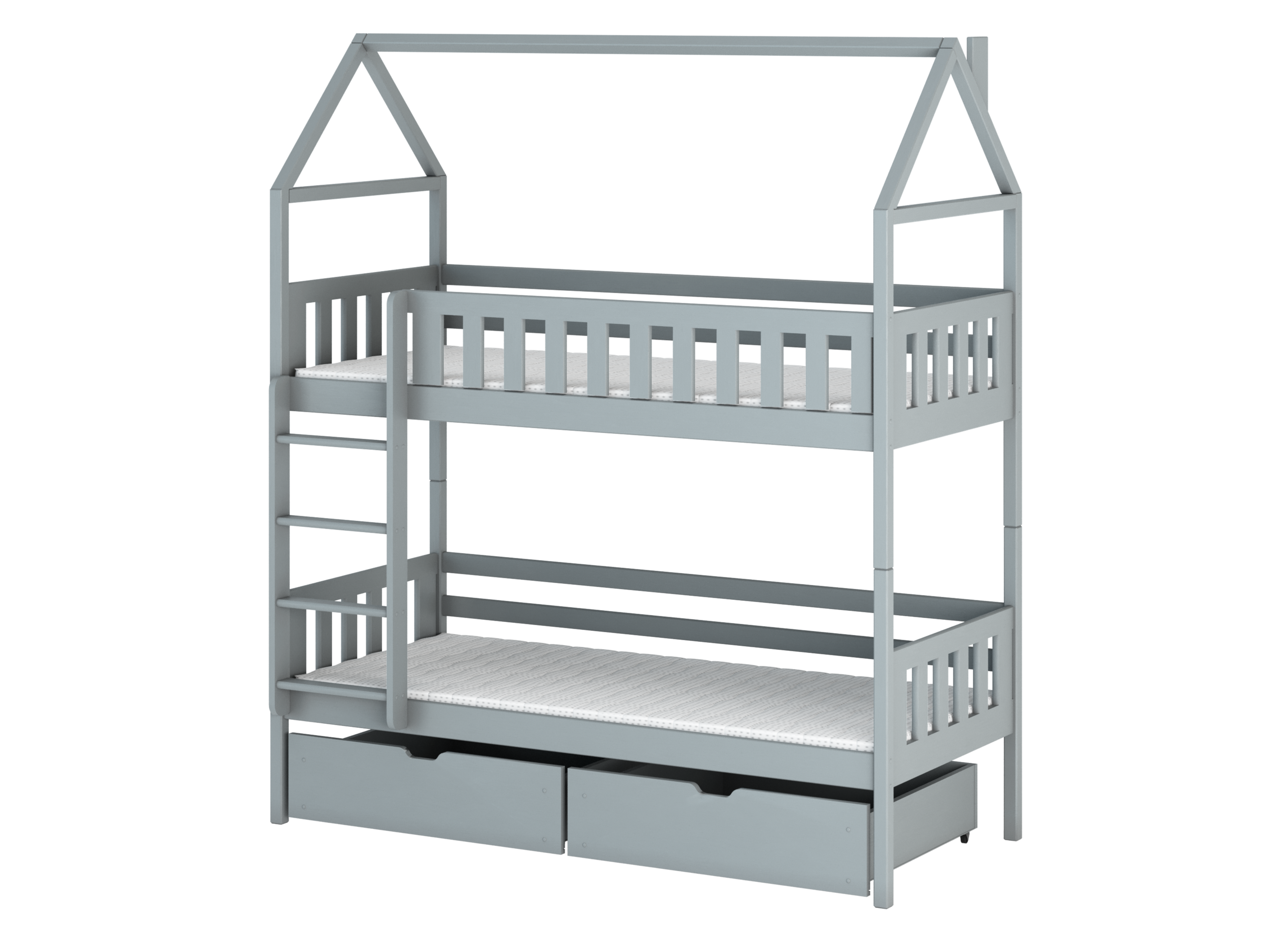 Förbättrad vardag – GAJA hussäng våningssäng i askgrått med lådor