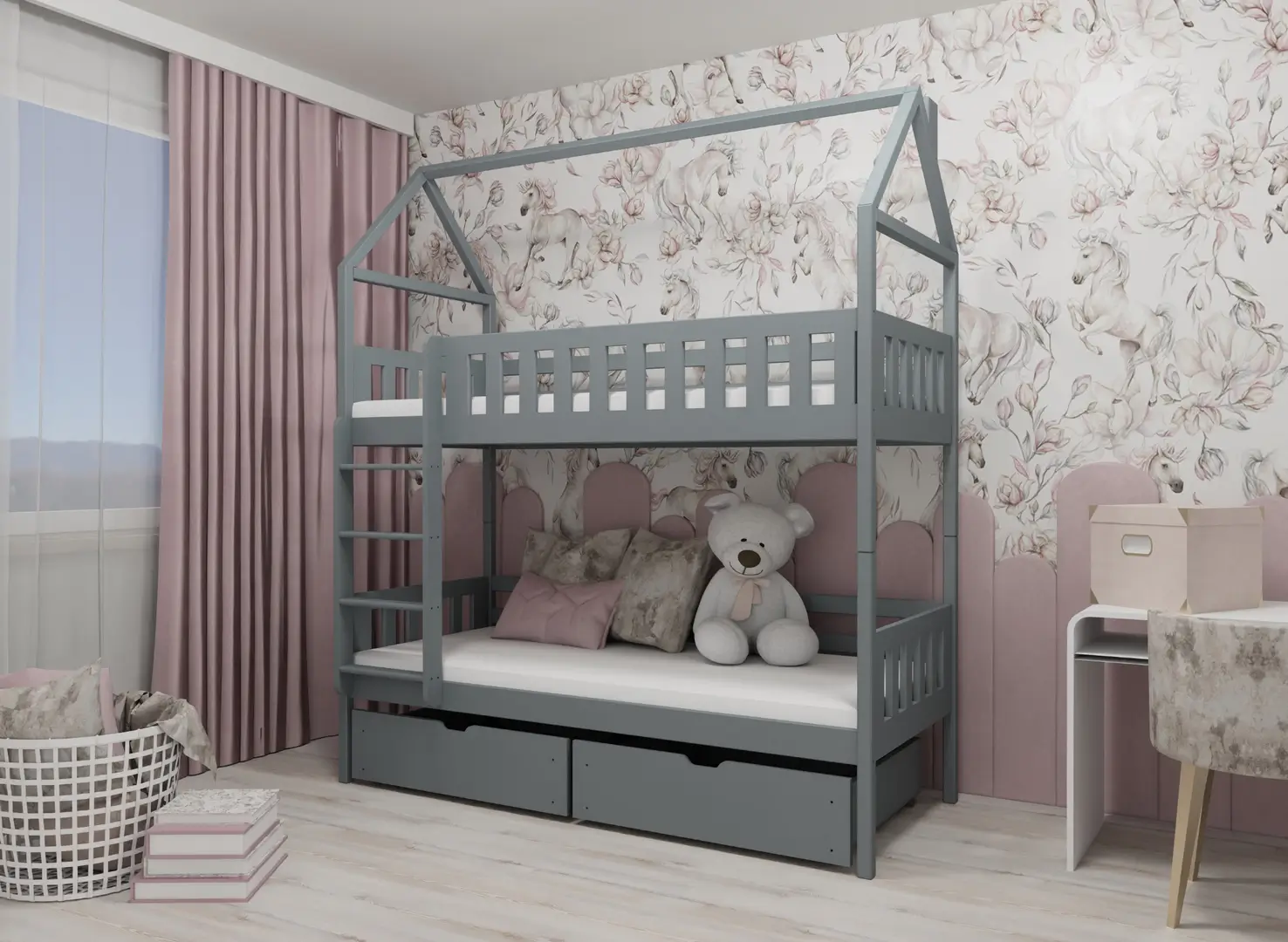 Ditt barn drömmer om den – GAJA våningssäng husmodell 80x190 i grått