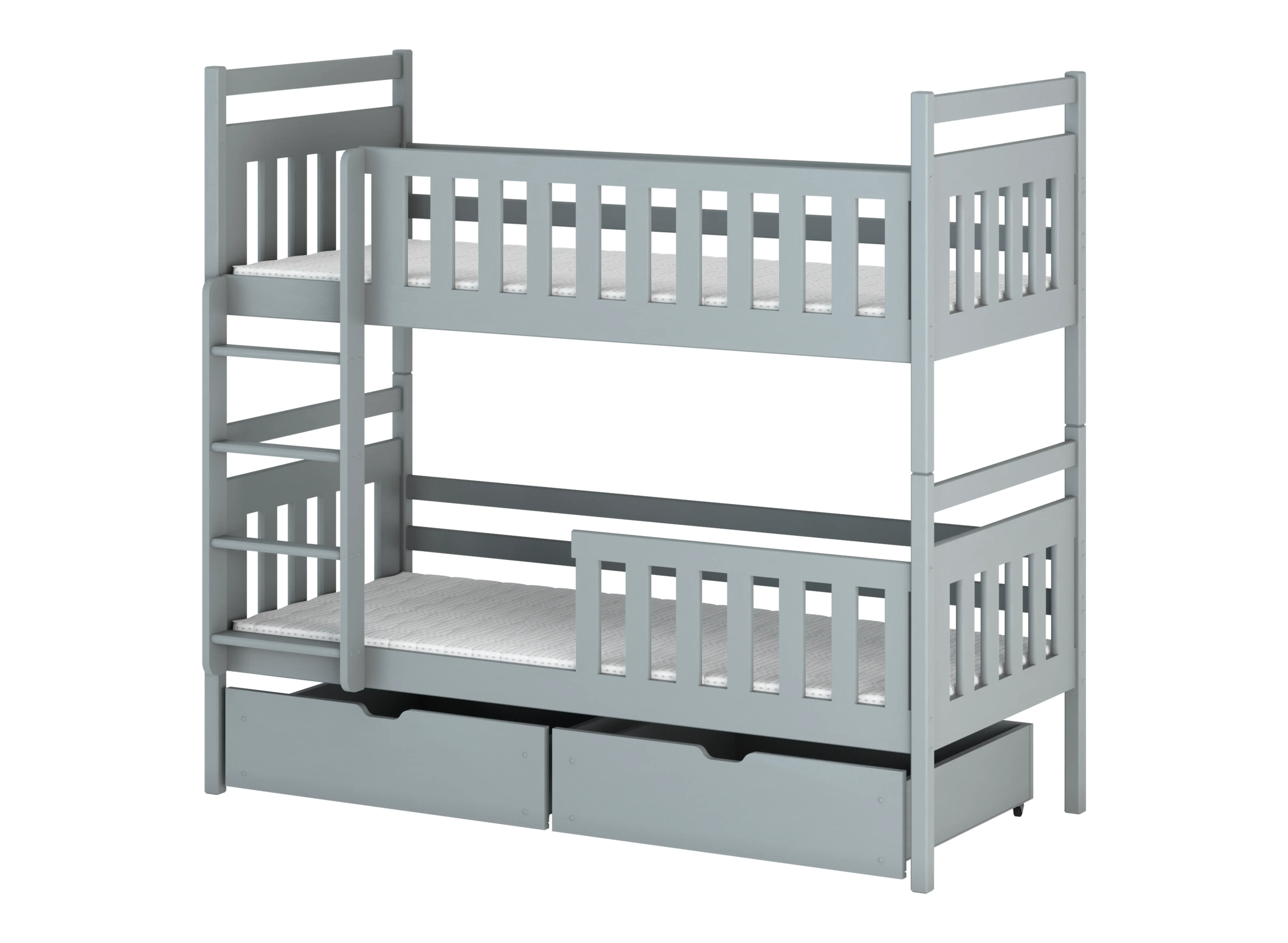 Våningssängen MONIKA är en utmärkt lösning inte bara för små rum, utan för alla barnrum där syskon bor. Varför? En sådan säng stimulerar fantasin och stöttar kreativiteten. Se också på den praktiska sidan av MONIKA syskonsäng. Båda delarna kan delas upp för att skapa två oberoende sovzoner. När du beställer vår MONIKA våningssäng ger vi dig stor frihet. Du kan personifiera möbeln så att den passar dina barns behov. Det är du som bestämmer om utrymmet under sängen ska utrustas med två lådor. Vid beställningstillfället avgör du även om skyddsräckena på MONIKA våningssäng ska vara fast monterade eller avtagbara.