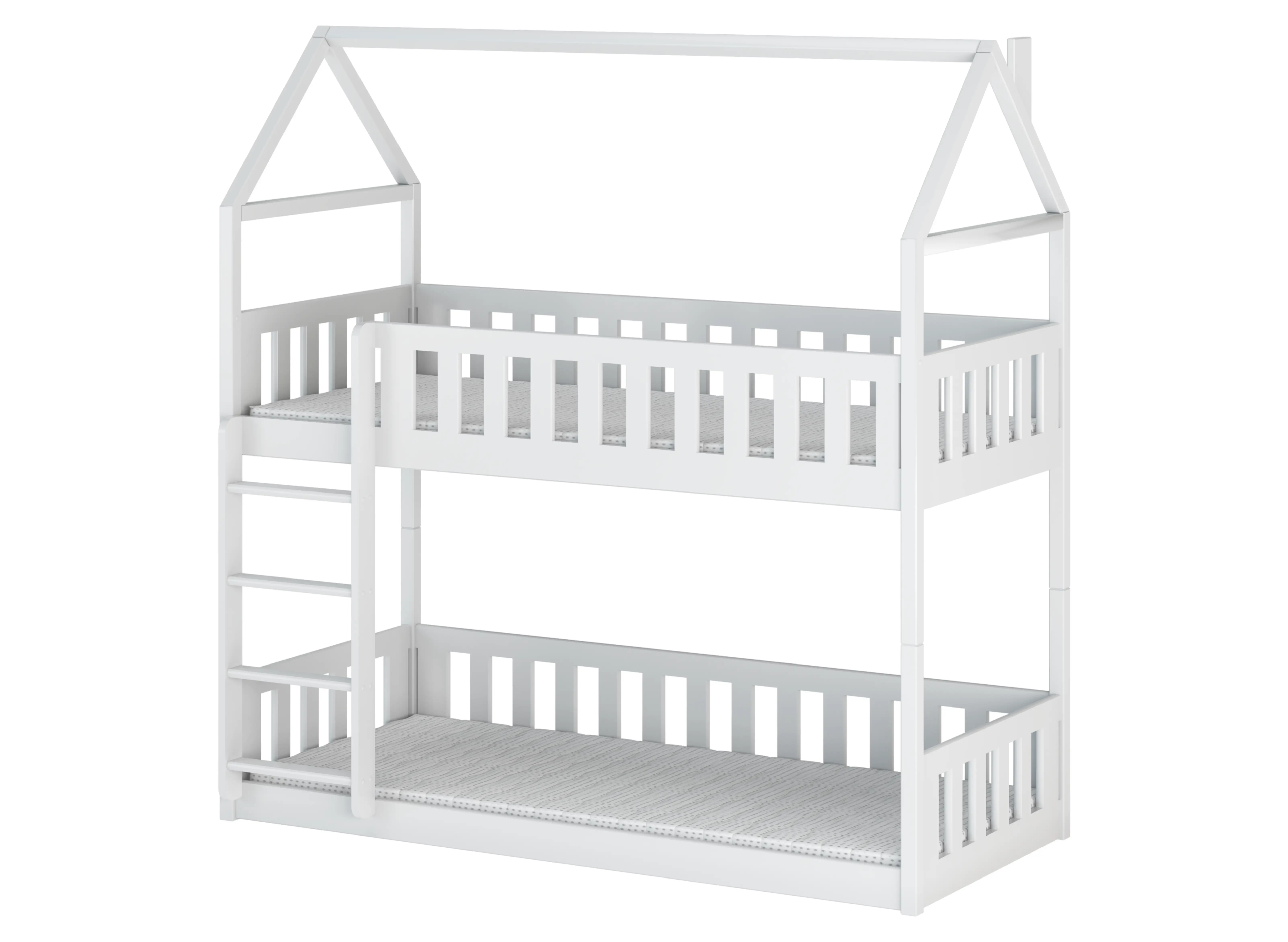 Glädje, charm och full funktionalitet – det är den vita våningssängen POLA 80x190 i husform