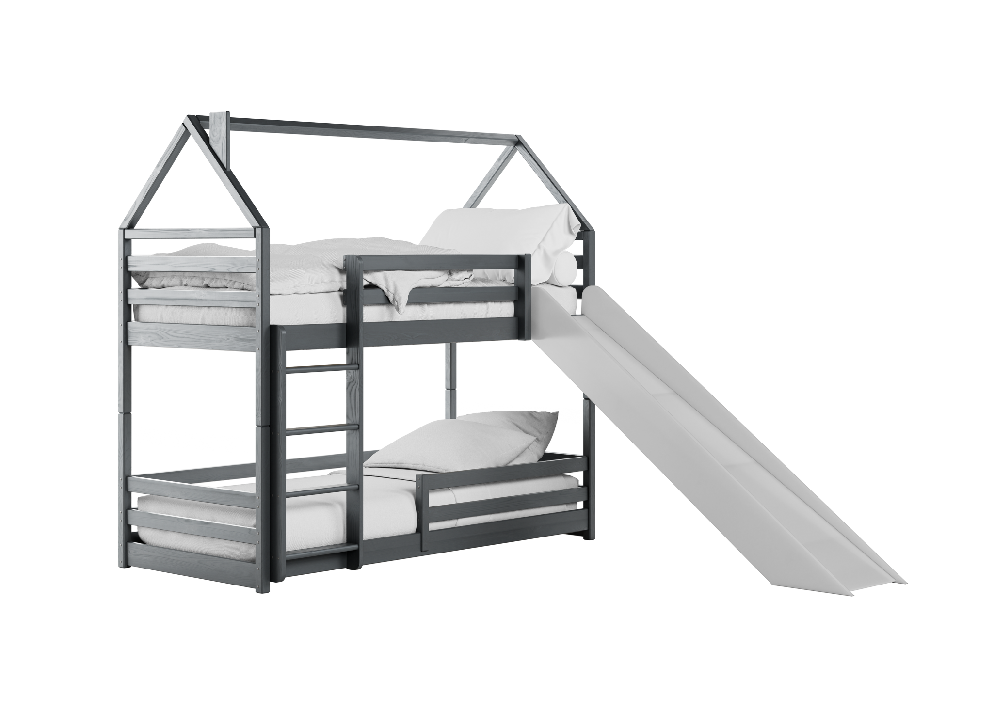 PLAY 80x200 grafitgrå våningssäng med rutschbana Lano Möbler