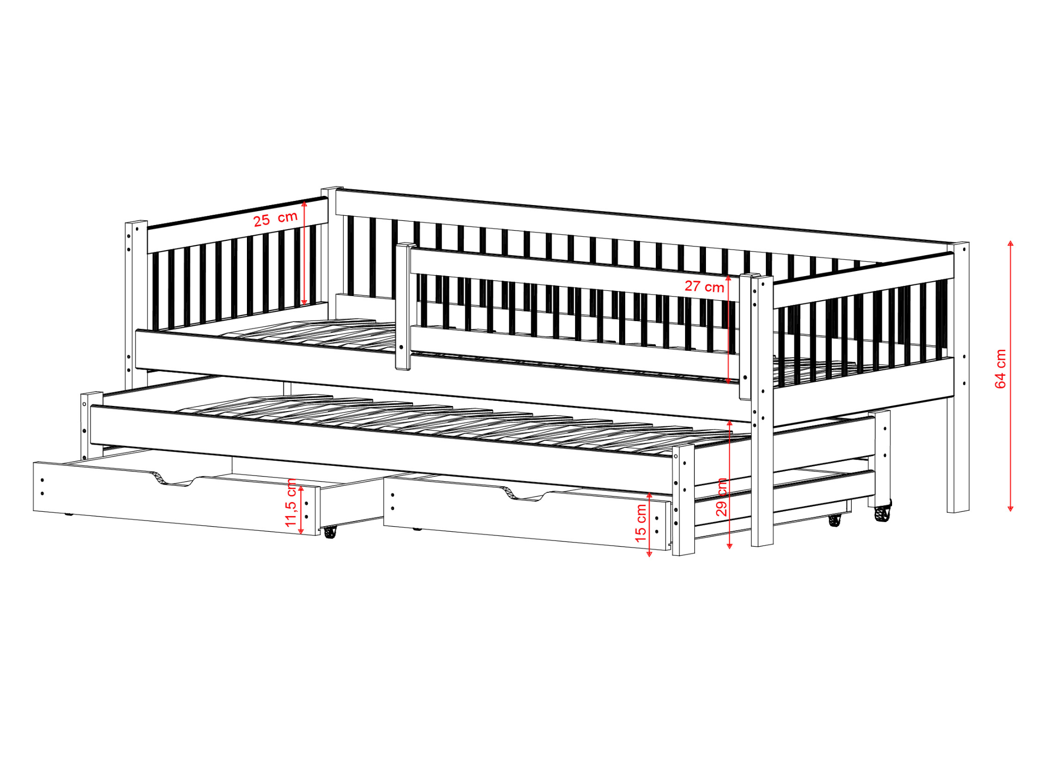 SOFTI barnsäng är det perfekta valet för två småttingar som alltid vill vara nära varandra. Detta är bara en av fördelarna med denna vackra möbel. Andra inkluderar en enkel men fantastisk konstruktion som ger varje barnrum en sagolik look. Bekvämlighet, komfort och hållbarhet i åratal – det är mottot för SOFTI barnsäng. SOFTI barnsäng uppskattas inte bara för sitt utseende och den komfort den erbjuder. Den har praktiska funktioner i form av en utdragbar säng samt rymliga lådor som du kan använda till precis vad du vill. Du kan till exempel förvara kläder eller leksaker där. Extra förvaringsutrymme i barnrummet är alltid guld värt, eller hur?
