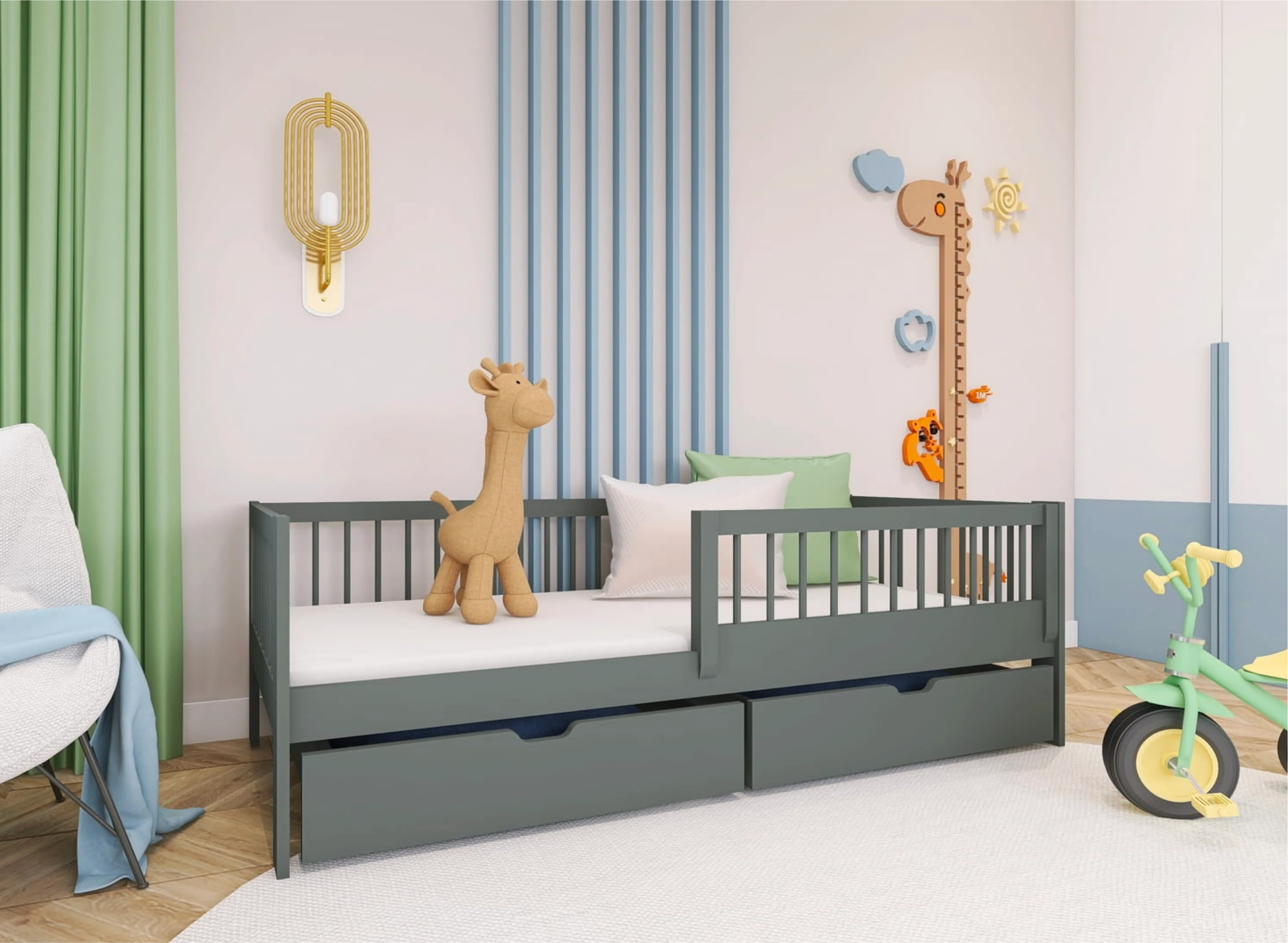 Välj grafitgrå barnsäng EDI 80x180 till dina barn och njut av deras lugna sömn