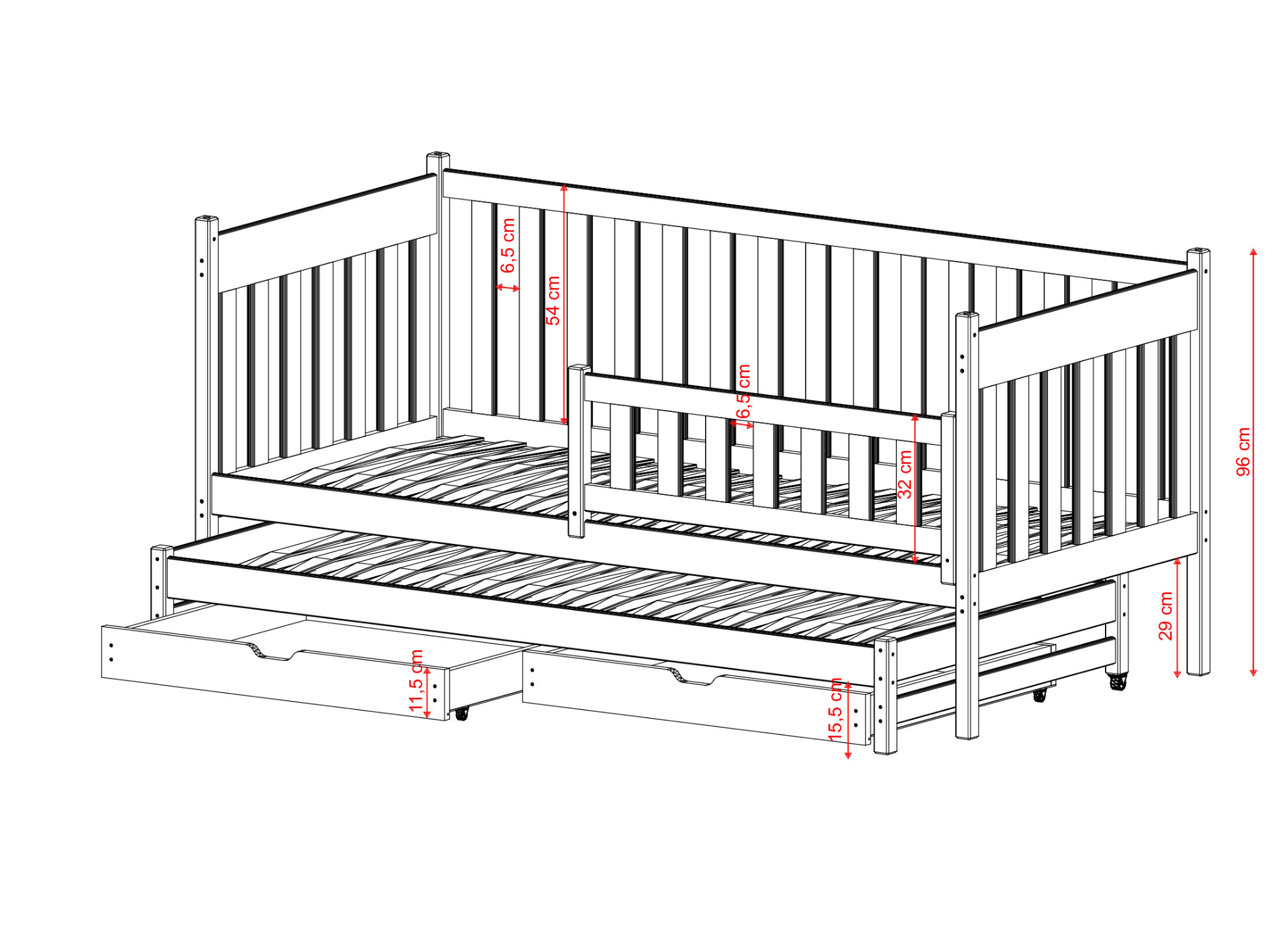 | Maximal madrasstjocklek för utdragbar säng | 8 cm |