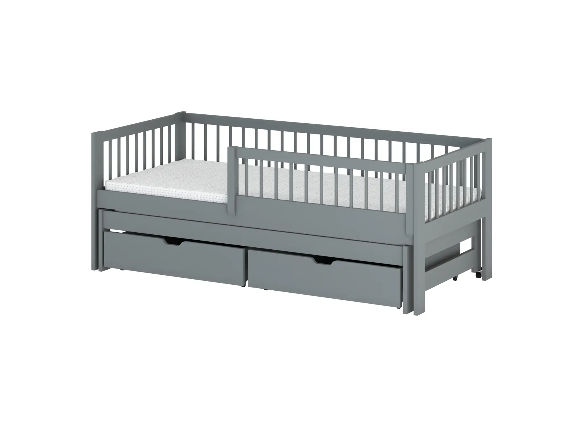 Stöd ditt barns utveckling genom god sömn i barnsängen SOFTI 90x200 i färgen grå