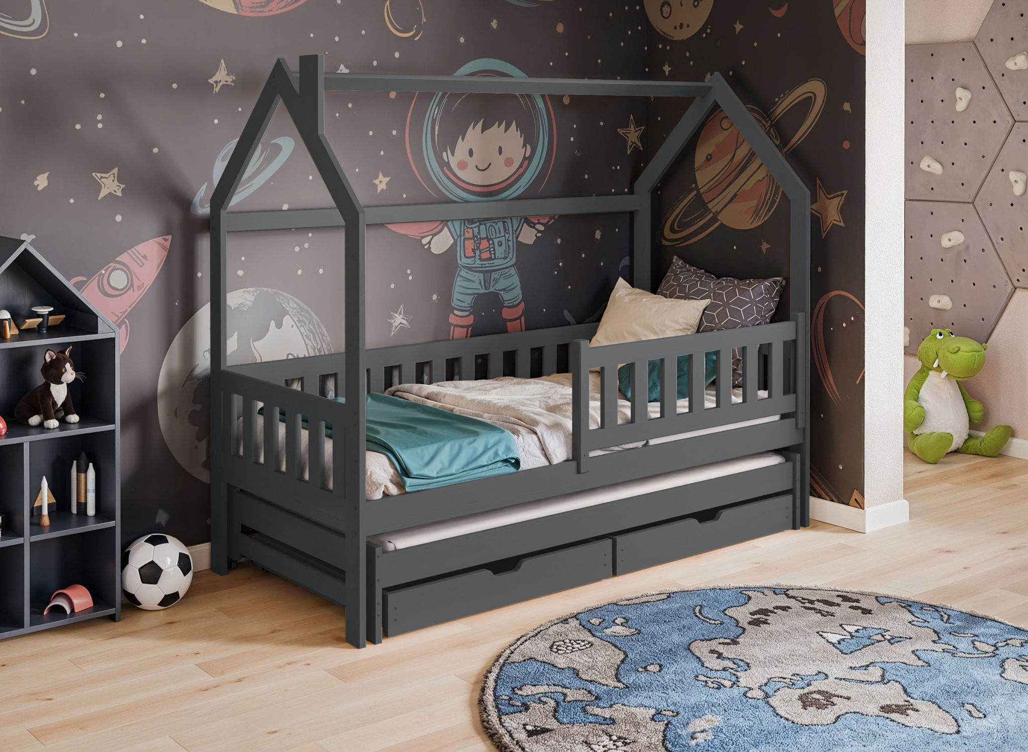 Möjlighet till ordning i rummet – grafitgrå hussäng MONKEY med lådor