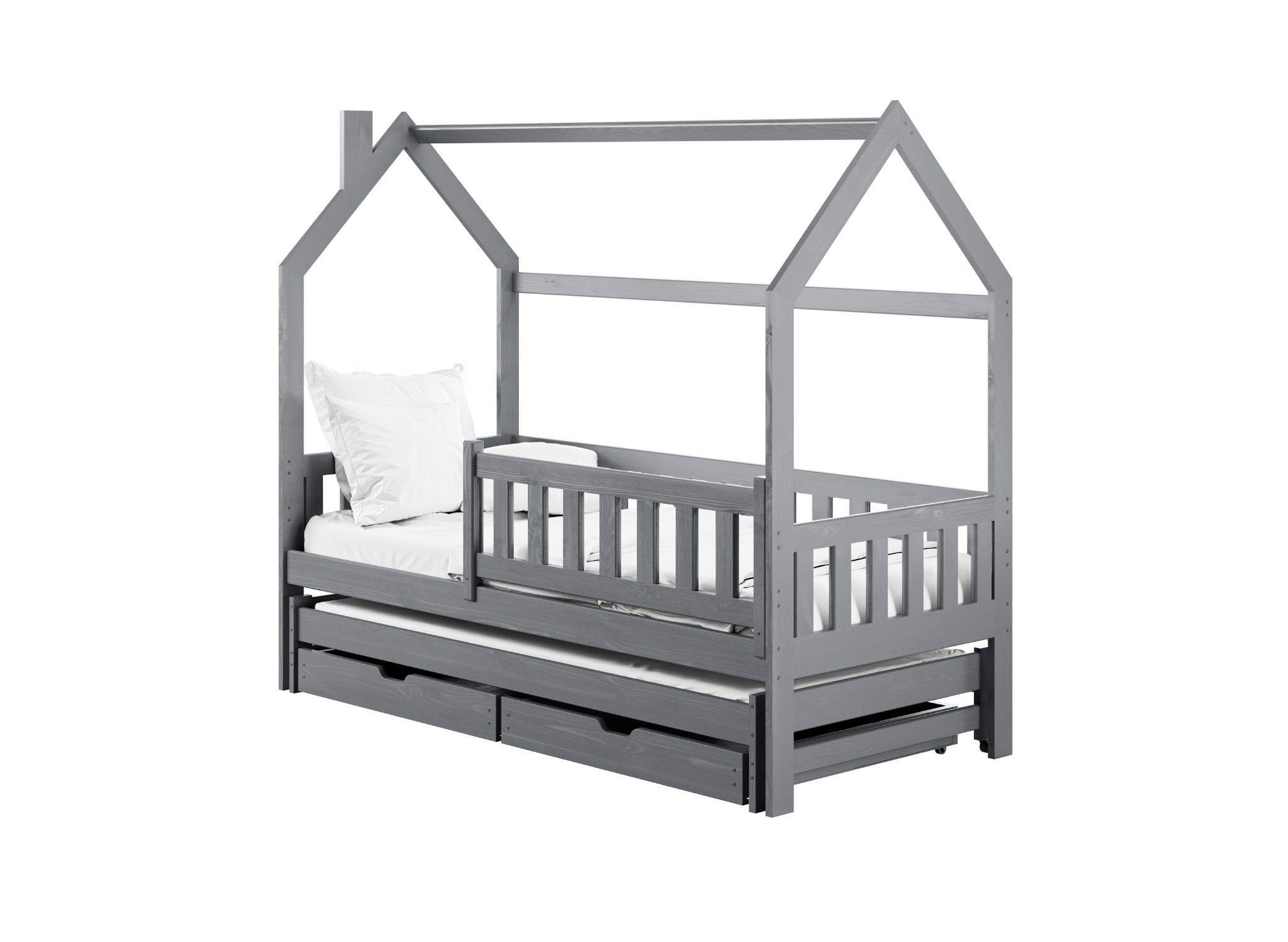 Vilket barn drömmer inte om en säng formad som ett hus? Med dess hjälp kan du skapa en sagolik miljö i barnrummet som inget barn kan motstå. Men det är inte allt. Den noggrant utformade MONKEY hussängen, konstruerad med hälsosam sömn i åtanke, erbjuder fullständig komfort. Skapad av råvaror av högsta kvalitet, är den extremt robust och ger trygghet för dina barn under både sömn och lek. MONKEY hussäng har dessutom en extra utdragbar sovplats. Det är ett perfekt sätt att garantera god nattsömn för två syskon!