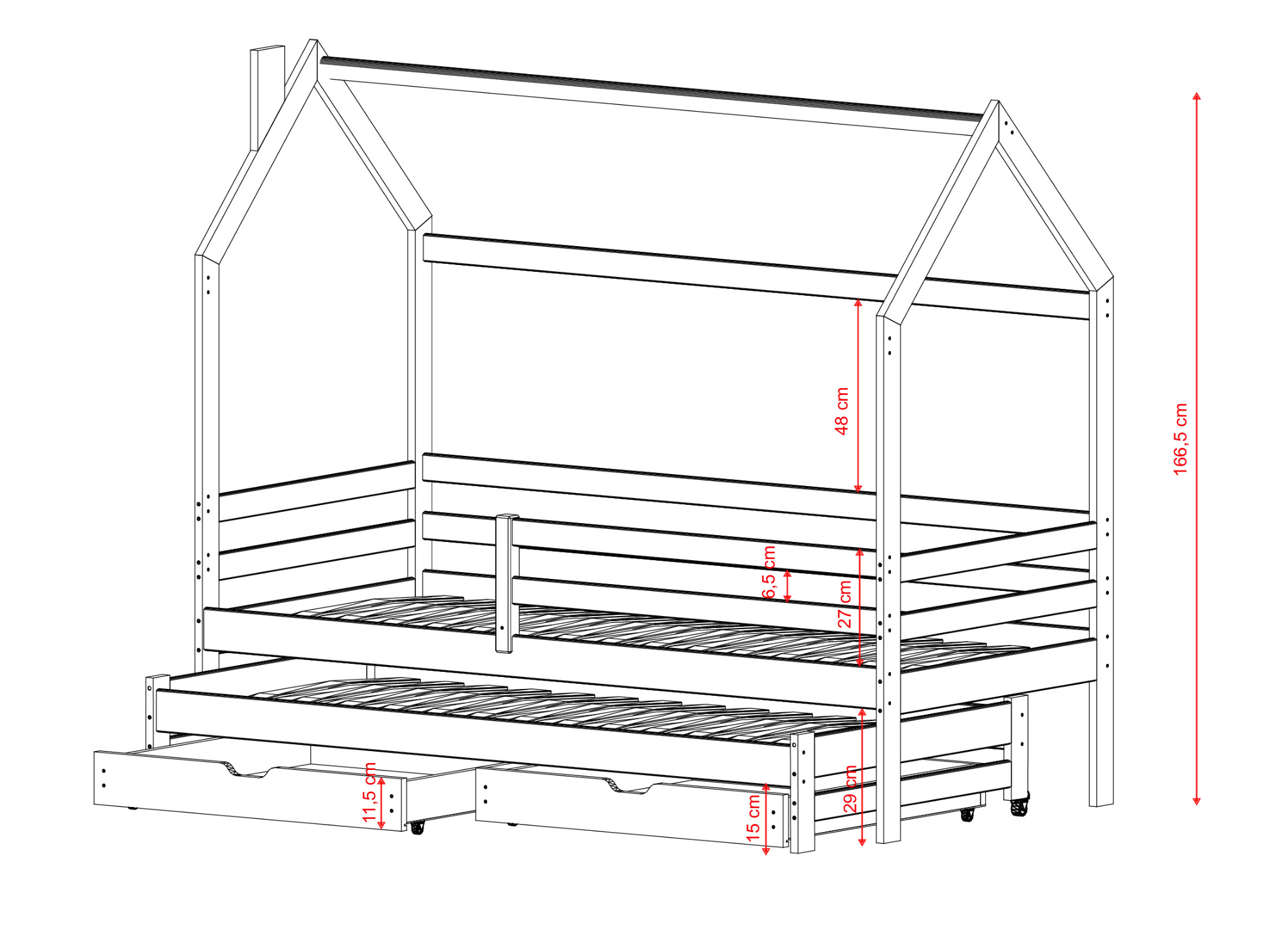 En barnsäng är ofta också en plats för lek och vila. Med vår unika hussäng DANEK kan ditt barn förflytta sig till ett land av otroliga äventyr. Oavsett om du inreder ett rum för en pojke eller en flicka, kommer möbler från Lano Meble att fungera perfekt som ett komplement. Inte ens de bästa leksakerna, fantasifulla spelen eller de dyraste prylarna är så viktiga som ditt barns säkerhet. Hos Lano Meble ser vi till att varje möbel är gediget tillverkad och ger barnen en korrekt nattsömn. Vi vet att våra minsta kunder särskilt har tagit hussängen DANEK till sina hjärtan. Inte bara för den höga kvaliteten på materialen, utan också för det tidlösa utseendet.