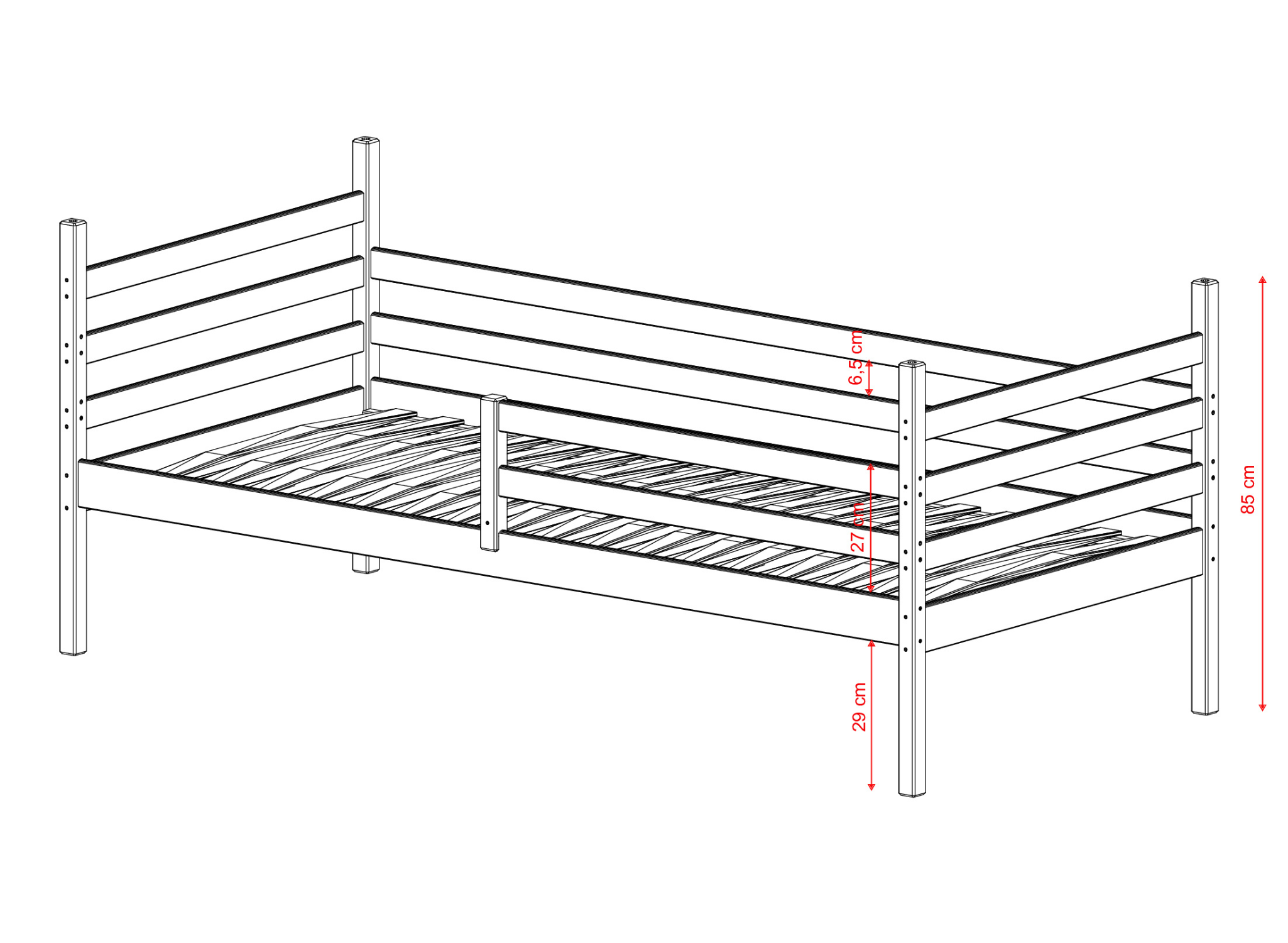 Ditt barns trygga sömn är den vackraste komplimangen för oss. Vid tillverkningen av våra möbler använder vi furu, som kännetecknas av hög dammresistens, vilket gör att barnsängar från Lano Meble även är ett utmärkt val för små allergiker. Den minimalistiska furukonstruktionen i barnsängen MELANI och sängbottnen av björkribbor av FLEX-typ garanterar barnets komfort och säkerhet under sömnen. Dessutom gör den klassiska och enkla formen på MELANI-sängen att den passar in i alla inredningar. Den kashmirfärgade sängen kompletterar perfekt såväl förskolebarnets rum som det kräsna tonårsrummet. Med barnsängen MELANI väntar lugna nätter och glada morgnar.