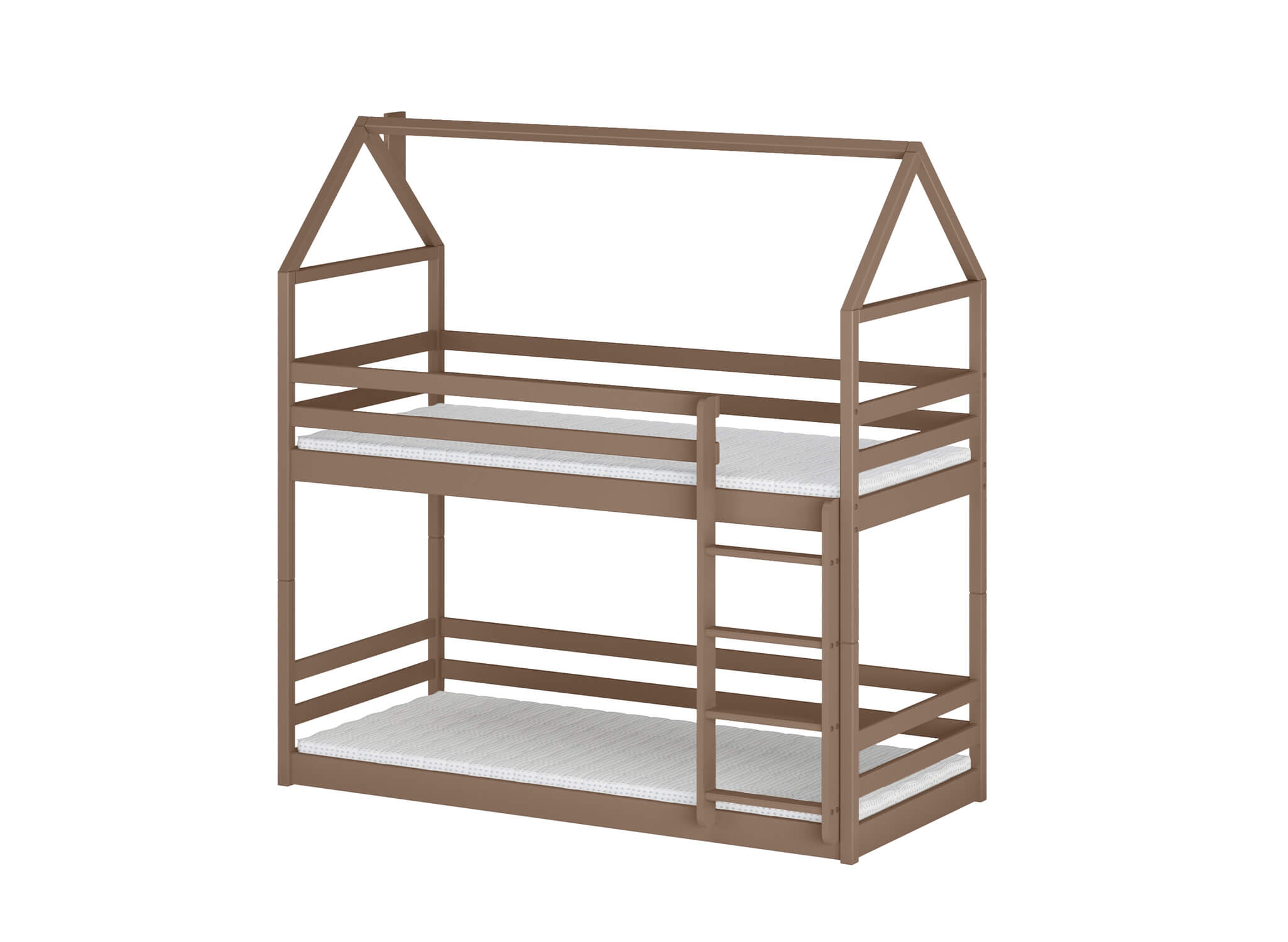 AXEL 90x180 mjölkchoklad våningssäng hus Lano Möbler