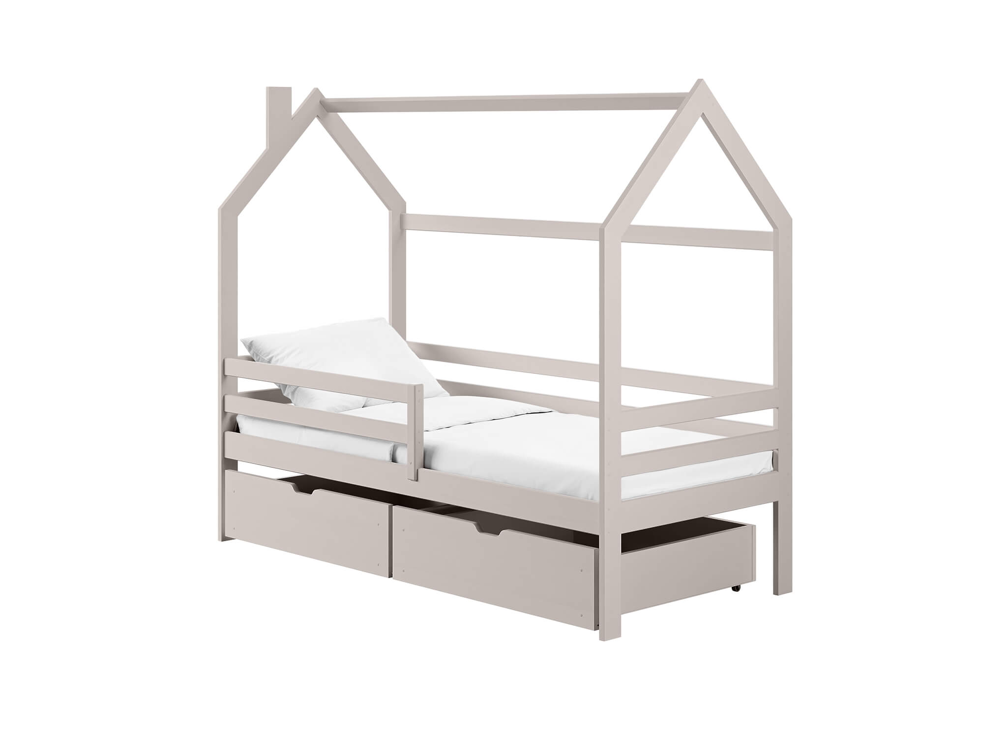 Om du vill ge ditt barn en hälsosam sömn, kom ihåg att madrassen är den viktigaste delen i varje barnsäng. Efter en dag fylld av lek och lärande behöver din ögonsten ett bekvämt, allergivänligt material som garanterar säkerhet under natten. Till LILA hussäng från Lano Meble kan du bland annat välja skummadrasser, resårmadrasser eller madrasser med kokosfiber. Våra specialister hjälper dig att välja rätt modell. Ditt barns säkerhet är vår prioritet. Träräcken monterade runt ramen på LILA hussäng skyddar den lilla från att oavsiktligt glida utanför madrasskanten. Om barnet tidigare sovit i en spjälsäng blir det lättare att vänja sig vid en vanlig säng. Både du och ditt barn kommer att sova lugnt med en LILA hussäng i närheten.