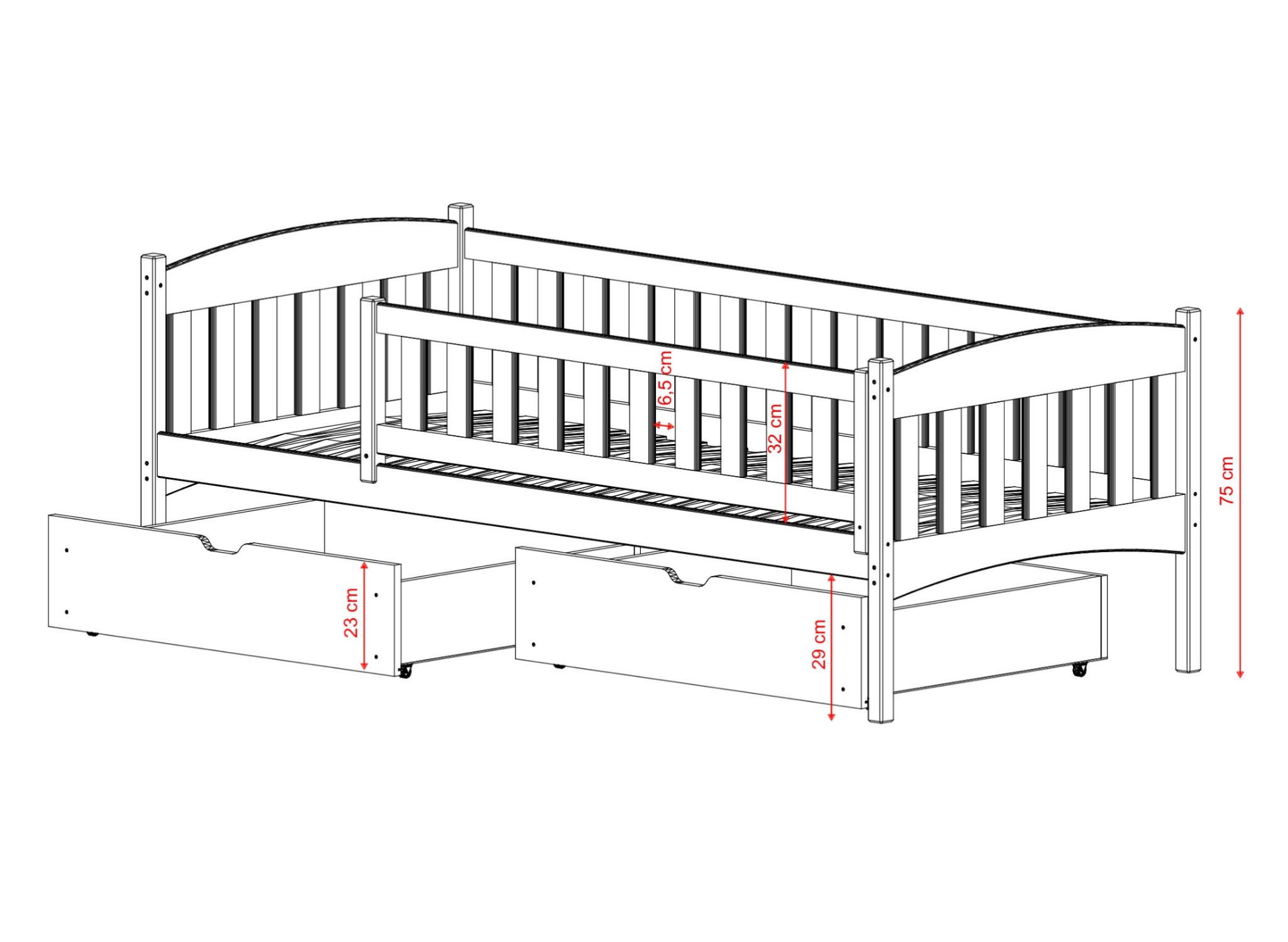 Även om inredningen i ett barnrum kan utformas på många sätt, får en sak inte saknas: en funktionell barnsäng. Se om modellen GUCIO från Lano Meble är det rätta valet för ditt barn. Som förälder har du säkert din egen vision av hur en perfekt barnsäng ska se ut. Modellen GUCIO kan konfigureras fritt för att bäst möta dina förväntningar. Du kan ändra yttermåtten och till och med utseendet på sängens undersida, som kan (men inte måste) utrustas med rymliga lådor. Det är upp till dig hur GUCIO-sängen i ditt barns rum kommer att se ut.